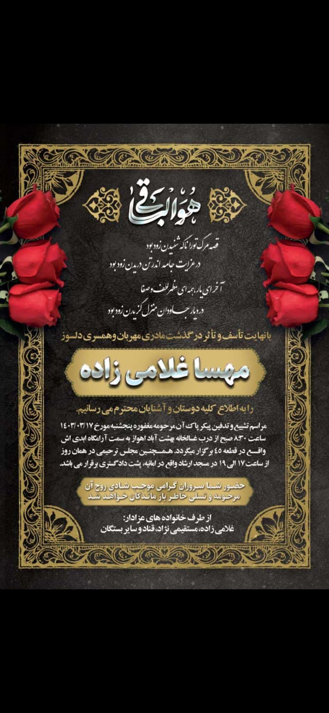 یادبود زنده یاد مرحومه مهسا غلامی زاده